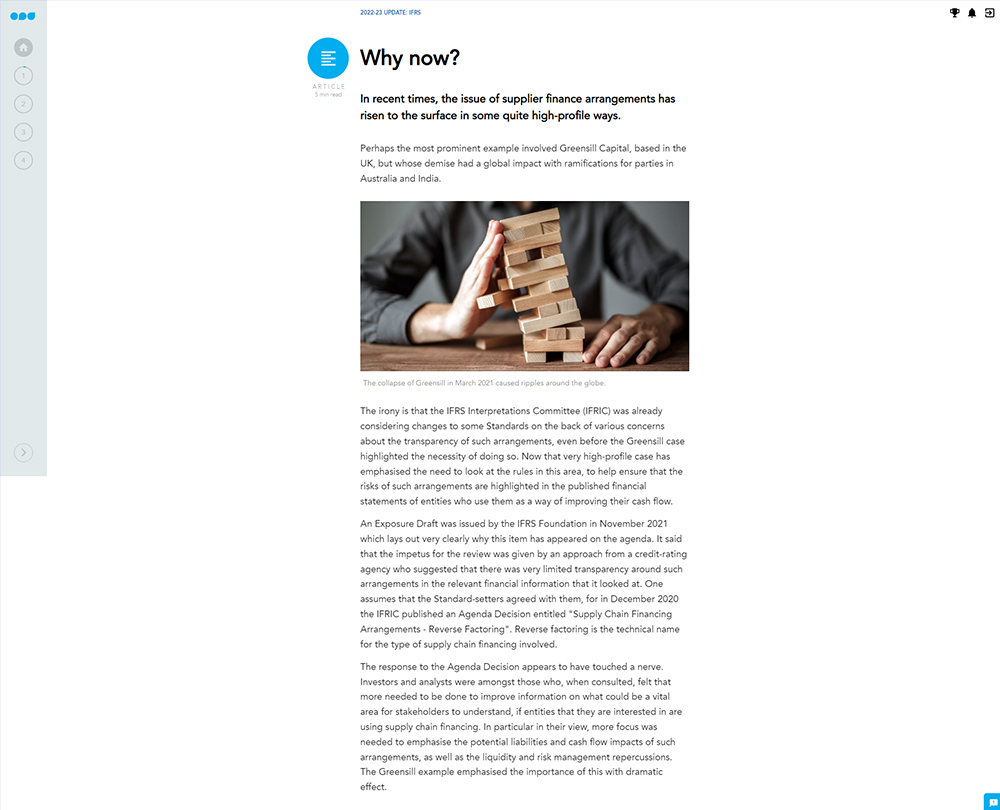 Making sure you are up to date with the most recent recommendations regarding disclosures, in the new Sustainability Standards released by the ISSB, and in the new Exposure Drafts providing guidance and clarification on subsidiaries and on supplier finance arrangements.