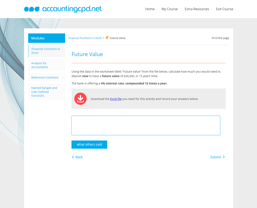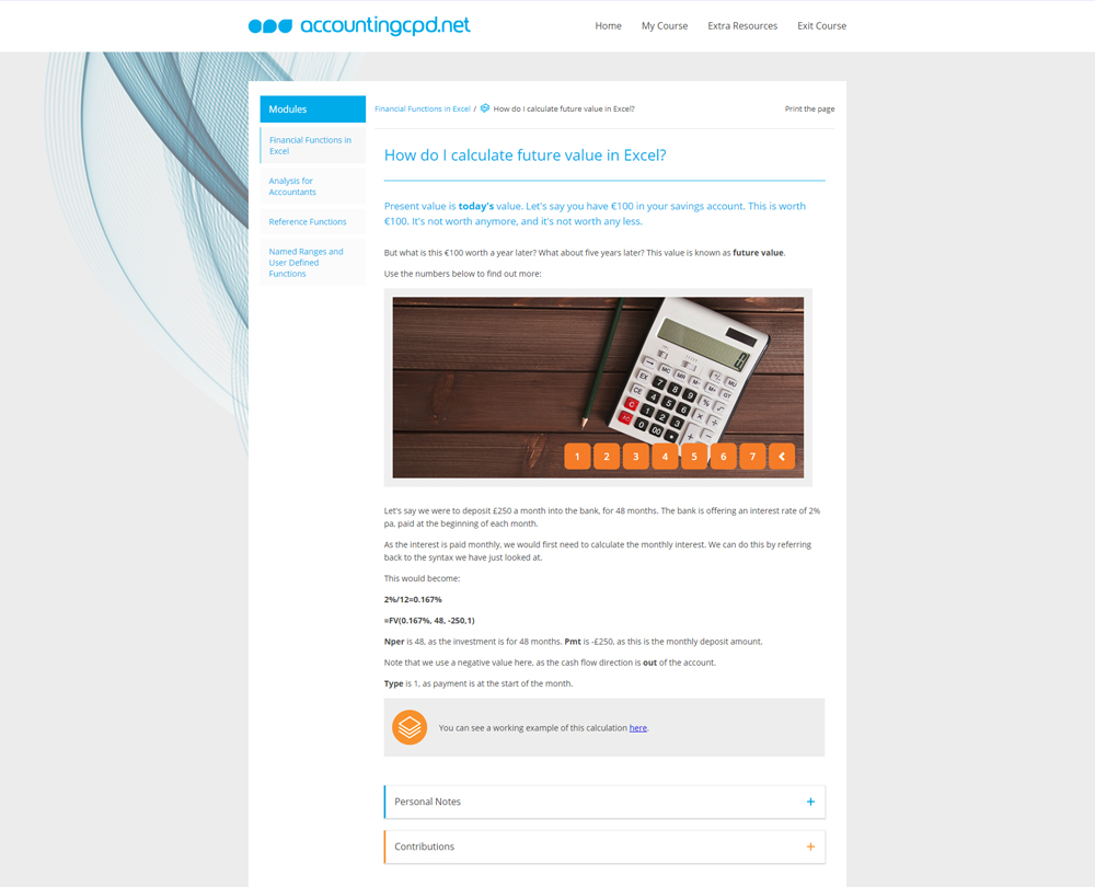 This course will help you develop the skills you need to carry out quick calculations, whether you're trying to calculate loan repayments, or carry out what if analysis on your data. You'll learn how to calculate future value, carry out one and two variable analysis, use reference functions, and create dynamic ranges and user defined functions.